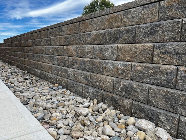 Allan Block Classic is a split face retaining wall. It is offered in a variety of shapes & has a matching cap with a split face and smooth top. It has been a favorite among wall builders for years.
