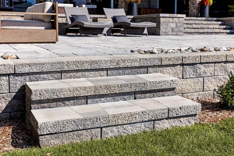 Architectural Cap is a double sided cap that has a split face texture. It is used for seat walls & steps with either a straight or curved layout.