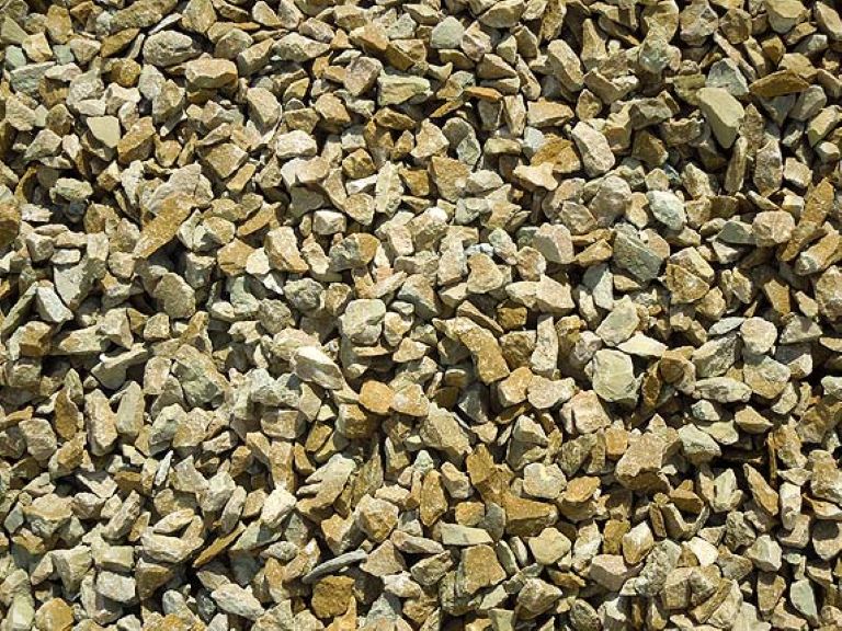 Brassfield #4 has a size range from (3/4″ – 1 1/2″) it is a crushed stone tan in color used in landscape beds to replace mulch, around patios, driveways & water features.