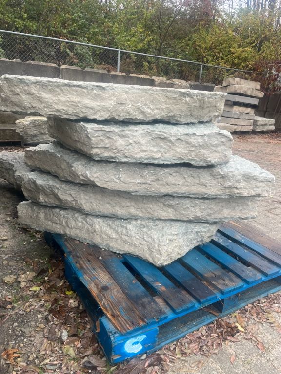 Colonial Gray Slabs are a natural limestone light gray in color these slabs are around 6″-8″ thick and are irregular in size and shape the are used in a variety of applications in landscape projects such as accent pieces, retaining walls, steps & in water features.