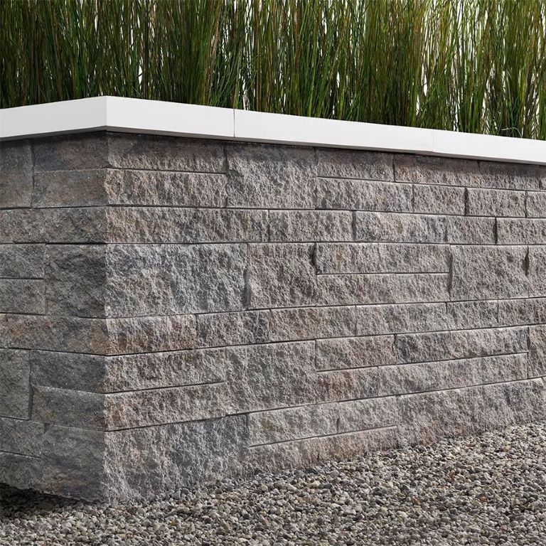 Mini-Creta Wall is a double sided wall that has a split face texture. It is offered in both 3″ & 6″ heights and is palletized with a variety of lengths to build curved or straight walls, planters, firepits & outdoor kitchens. It is also offered in a corner/pillar block for building pillars & steps.
