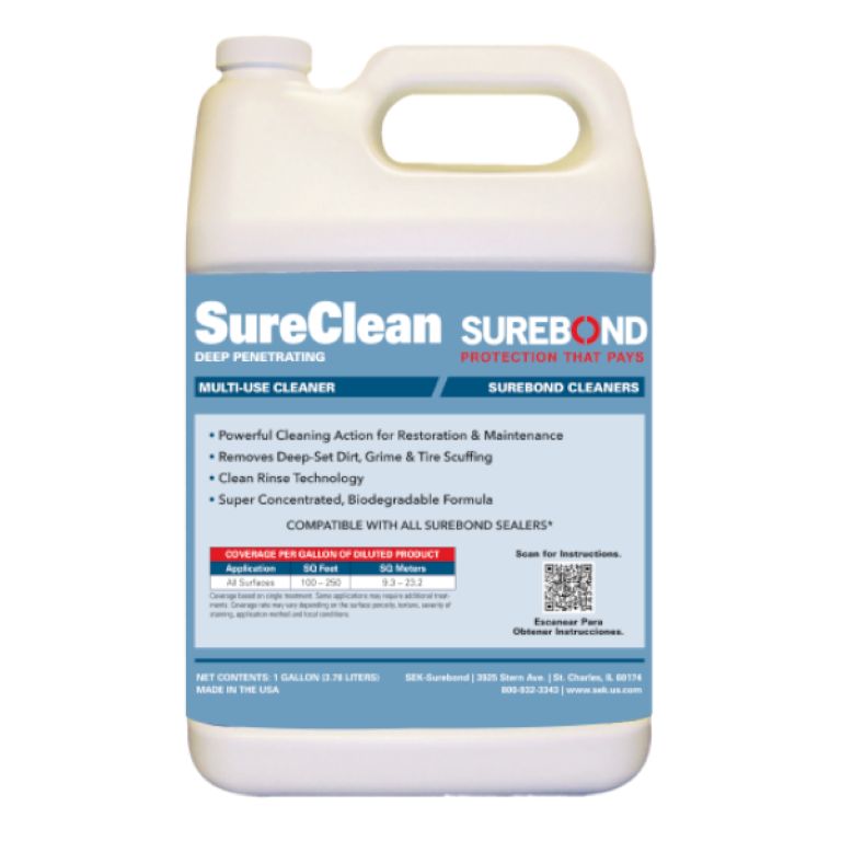 Surebond Sure Clean is a concentrated multi-use cleaner used to clean deep set dirt & grime from all types of hard surfaces such as pavers, walls, concrete materials & masonry bricks.